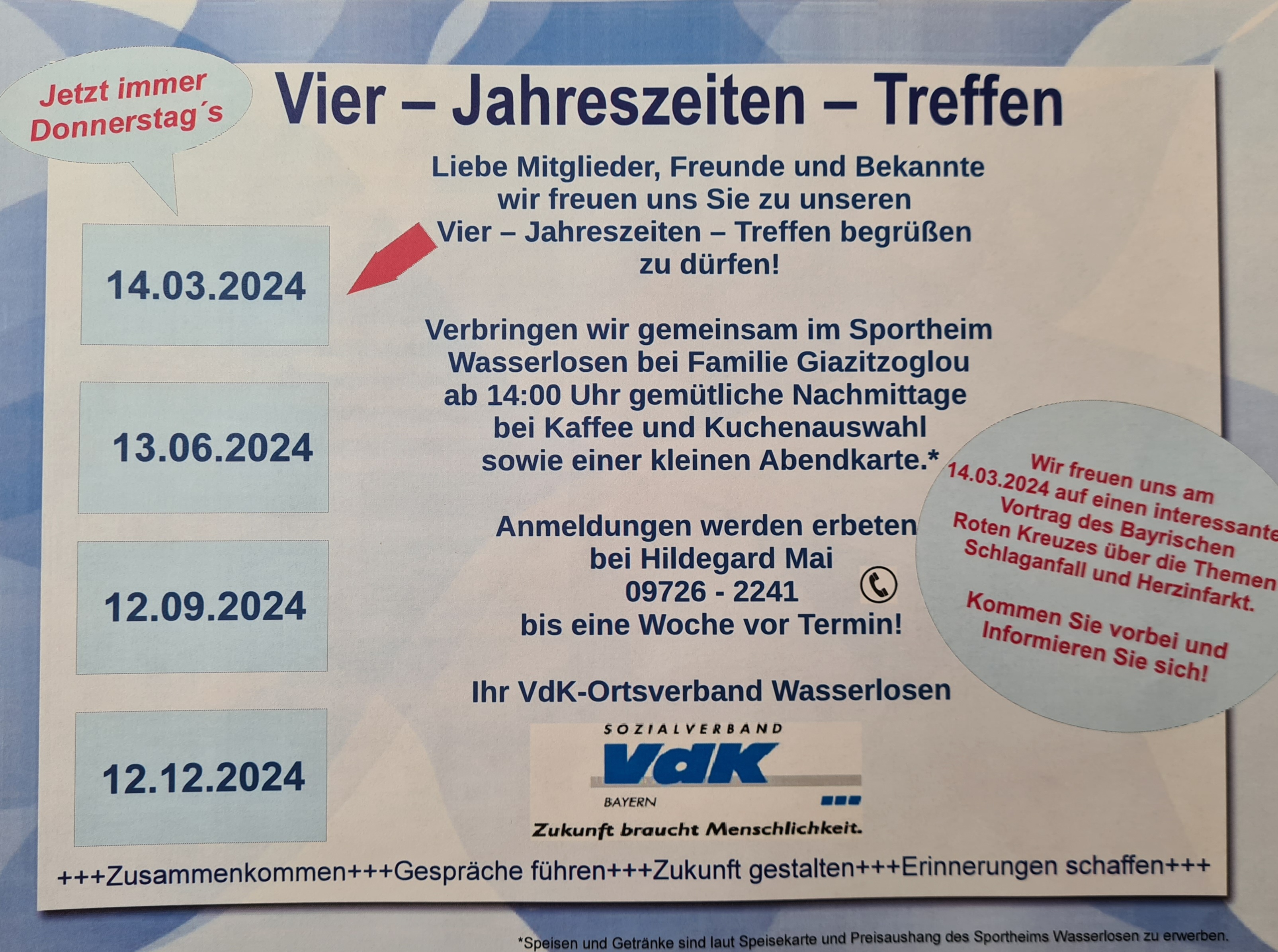 1. Vier - Jahres - Zeiten Treffen 2024 / VdK Ortsverband Wasserlosen