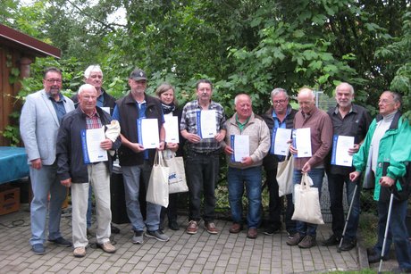 Nach einem Grußwort unseres stellvertretenden Landesvorsitzenden, Herrn Heinz Heeg, wurden von ihm langjährige Mitglieder geehrt (siehe Bild) und eine Urkunde mit einem kleinen Präsent überreicht.