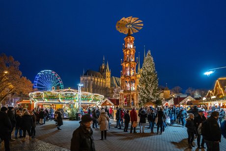 Das einzigartige monumentale Ensemble aus Mariendom und Severikirche, das Wahrzeichen der Stadt Erfurt, bildet die ideale Kulisse für den Erfurter Weihnachtsmarkt. Dort begeistern abwechslungsreiche Attraktionen große wie auch kleine Besucher und locken jedes Jahr etwa zwei Millionen Gäste an.